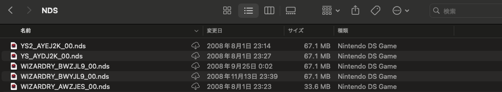 日本語ファイル名半角英数字ファイル名(.nds付き)