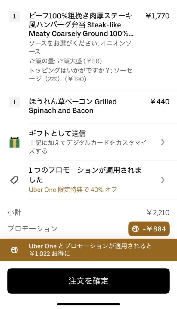 UberOne特典(1,500円以上で40%オフ)キャンペーンが本日7月8日までだったので、急いで注文したってぇ次第。すかいらーく系列のお店は結構デリバリーでもキャンペーンや割引を行うことが多いので油断できません。