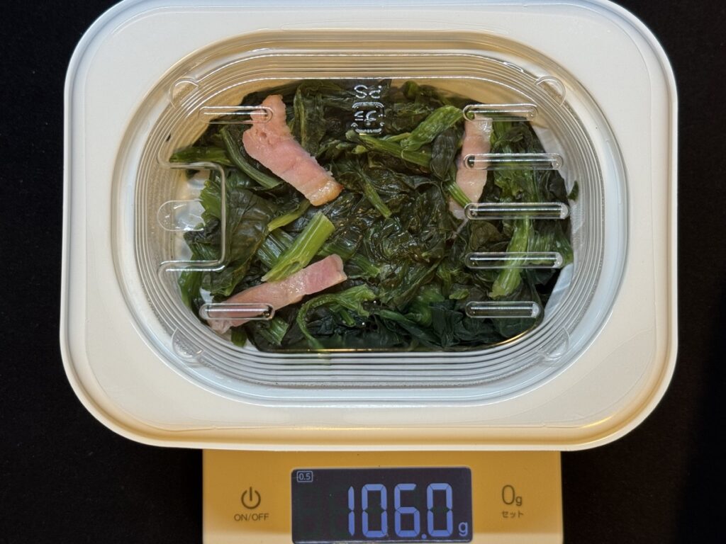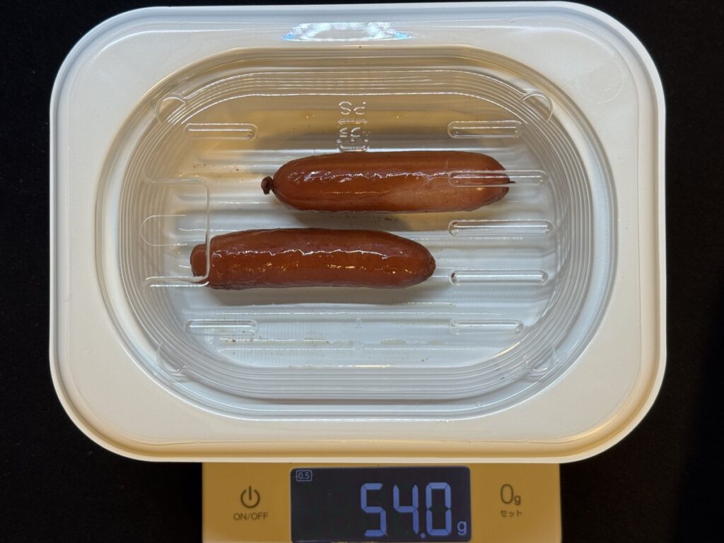 ソーセージは想像より小さいですね。1本あたり20g以下といったサイズ。ほうれん草ベーコンは意外に90gぐらいありました。価格的に150gぐらいあって欲しいなぁと思ったり。