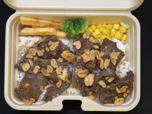 最初から掛かってるハンバーグのオニオンソースですが、これはデリバリーだと少し残念ポイントかも。容器がハンバーグに対して大きいため、配送中にソースが容器全体に分布してしまい、結果的にハンバーグ自体に掛かっているソースが少なめになっているようでした。最初からハンバーグに掛けず、ソース容器に小分けするとかすれば良さそうですが、それだとプラごみ増えるなぁ。まぁ、ソースとハンバーグ自体は美味しかったのでヨシ!