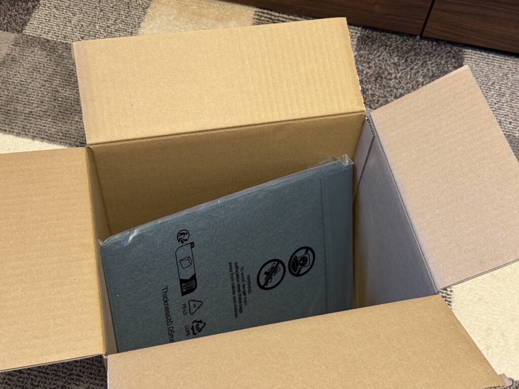 ついでに買ったYoga 14.5インチスリーブは別箱での梱包。んー、スリーブだけなのにダンボールが大きい。他に入れる適当な箱がなかったのかな。