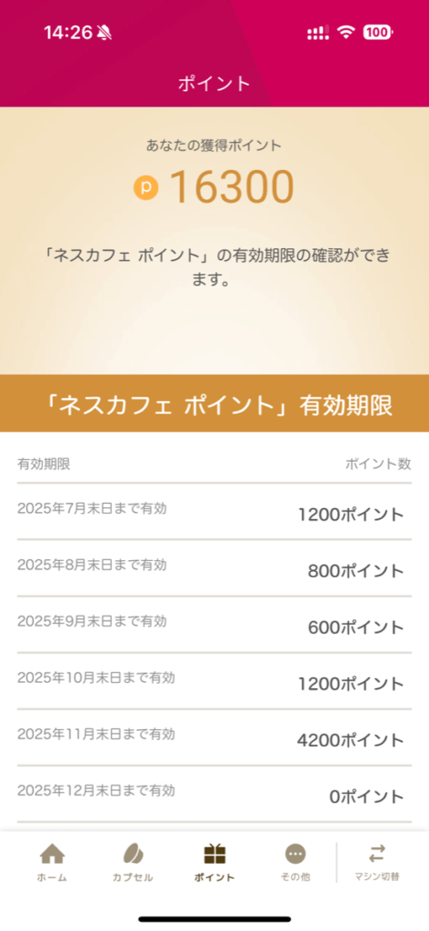 個人的にネスカフェアプリのログイン部分に不満がありました。結構頻繁にログイン操作が求められるんですよね。さらにログイン後、ポイント交換ページを開くと再度ログインが求められます。これが地味にストレス。