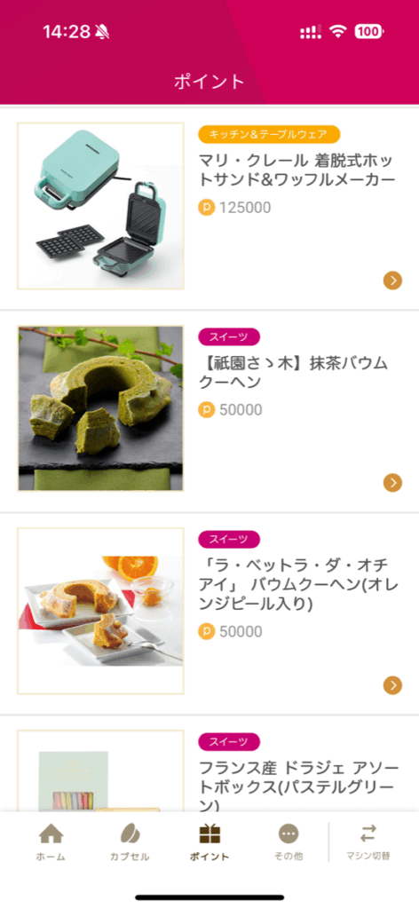 ※賞品ラインナップは随時更新されるため、最新情報はアプリ内の交換ページをご確認ください。