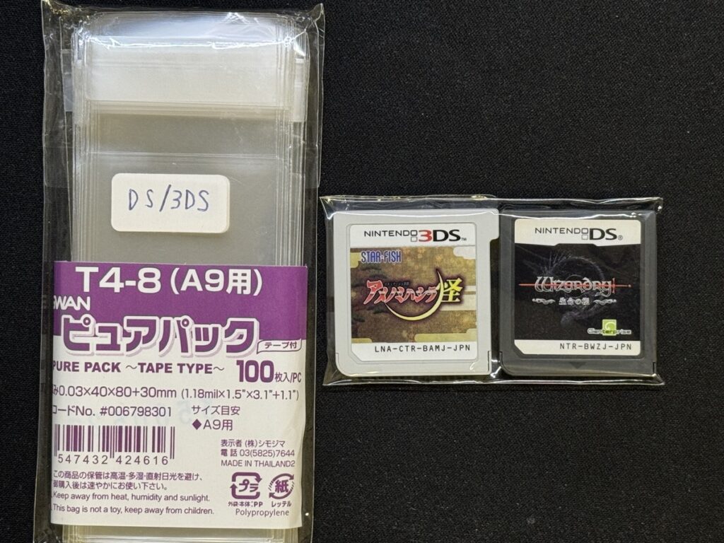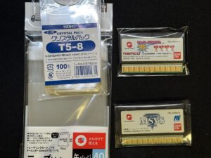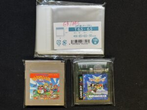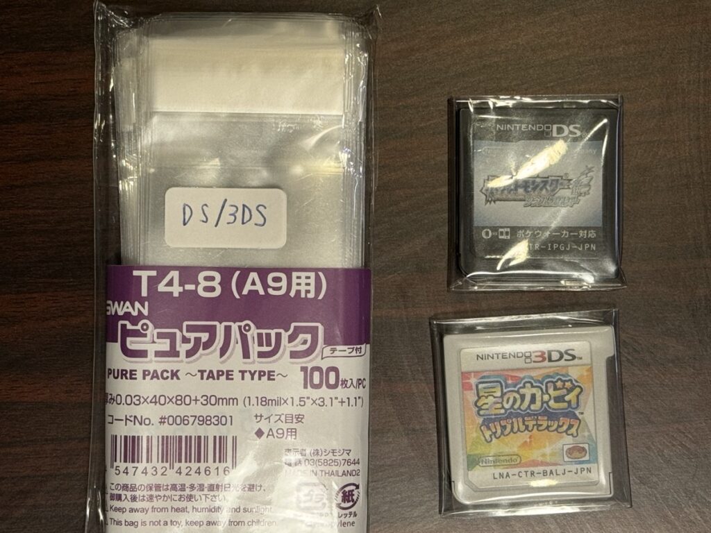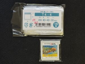 OPP袋はT6.5-6.5がジャストサイズで良い感じです。ゲームボーイカラーのカートリッジみたいに一部膨らみがあっても入ります。標準サイズはこれで決定。ただし、コロコロカービィみたいな一部特殊なサイズのカートリッジは入りませんのでご注意ください。一応ピュアパックにも同じサイズが売られてましたが、気付いたのは袋の王国で買った後でした。