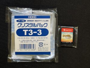 レトロゲームの保管については様々なアイテムが発売されていますが、ゲームソフトのパッケージを丸ごとカバーするようなものが主流です。一方で、パッケージや説明書がない”箱説なし”ソフトについては明確な収納グッズが中々見当たりません。どのようなケースに収納するかは各個人に委ねられています。ここでは自分がレトロゲームの収納で使用しているケースやOPP袋についてご紹介。