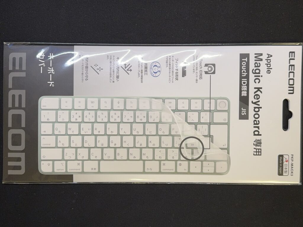 キーボードカバーは事前に購入済み。PC見ながら飲食する機会が多いので、カバーは2年程度で取り替えてます。カバーつけない方が明らかに押し心地が良いですが、お茶を溢したりすると大変なので痛し痒し。なお、TouchIDボタン部分はカバーで覆われないため、その辺りは注意が必要です。