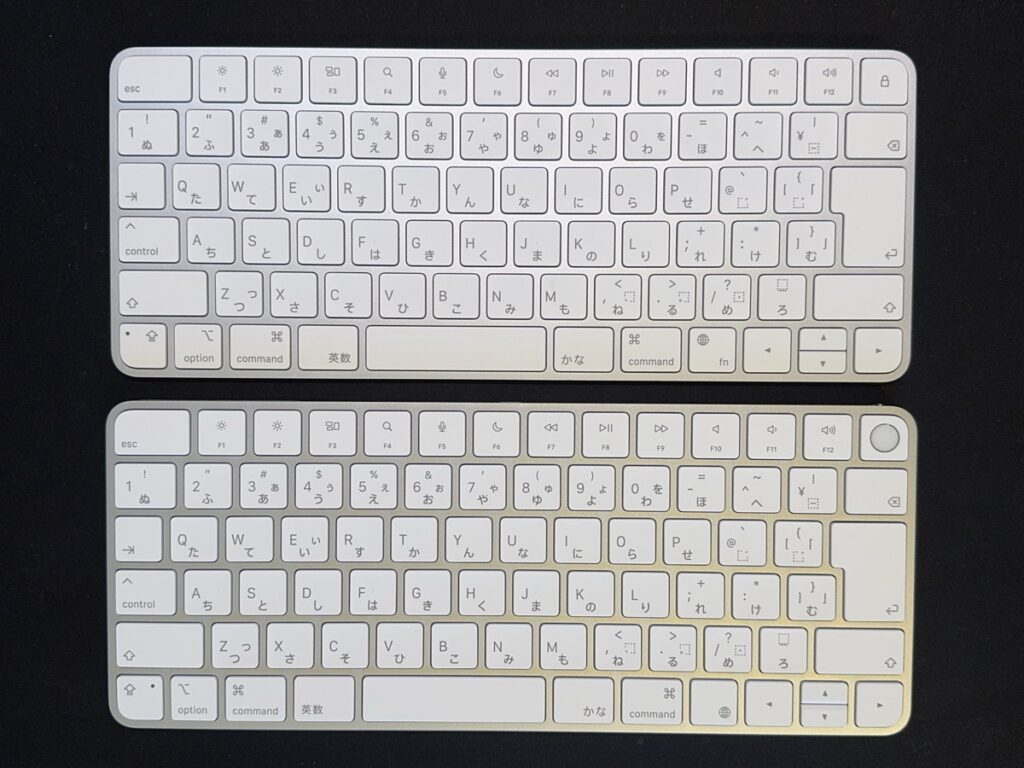 ついでに旧モデルと比較してみます。TouchIDを除いてボタン配置などは変更ありませんが、印字の位置などが微妙に変わってるのがわかります。