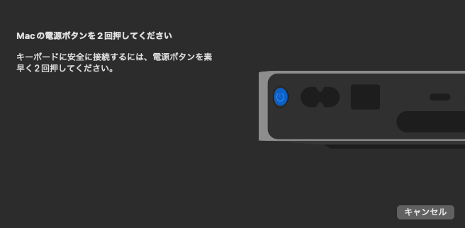 MagicKeyboard本体の電源ボタンをONにしてからUSB-CケーブルでMacMiniに繋げるだけ。これだけで自動ペアリングまでやってくれます。あとはケーブル外してもBluetooth接続でそのまま使えるって寸法だぁ。
