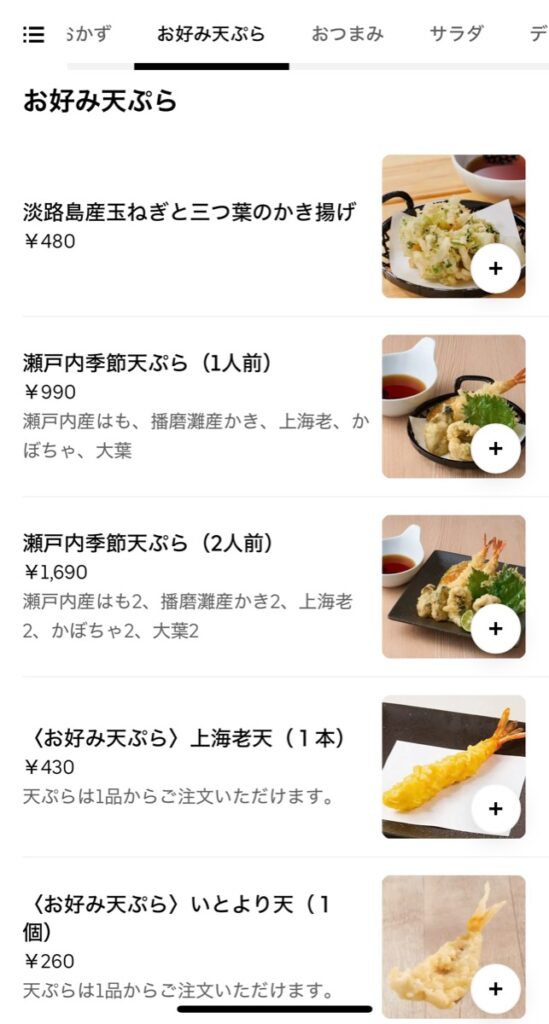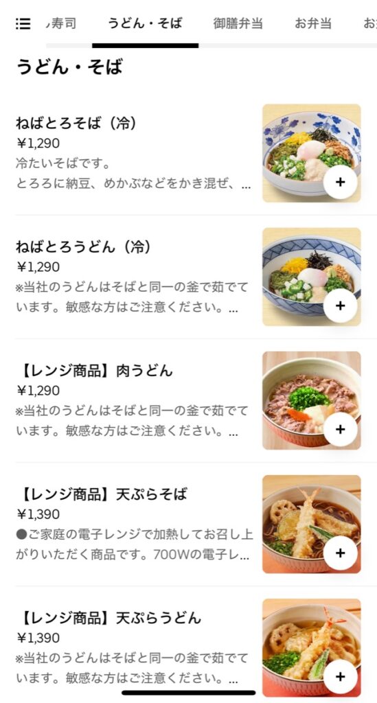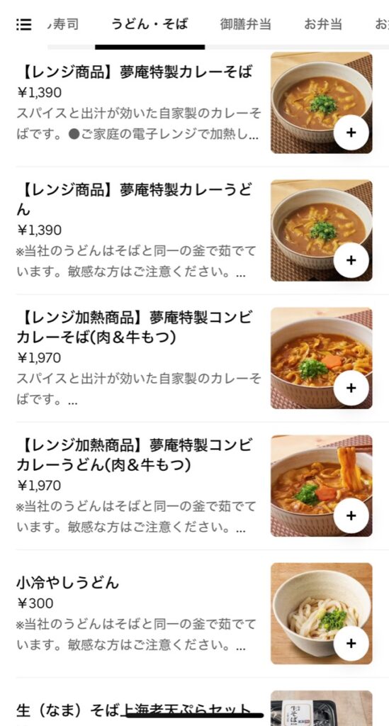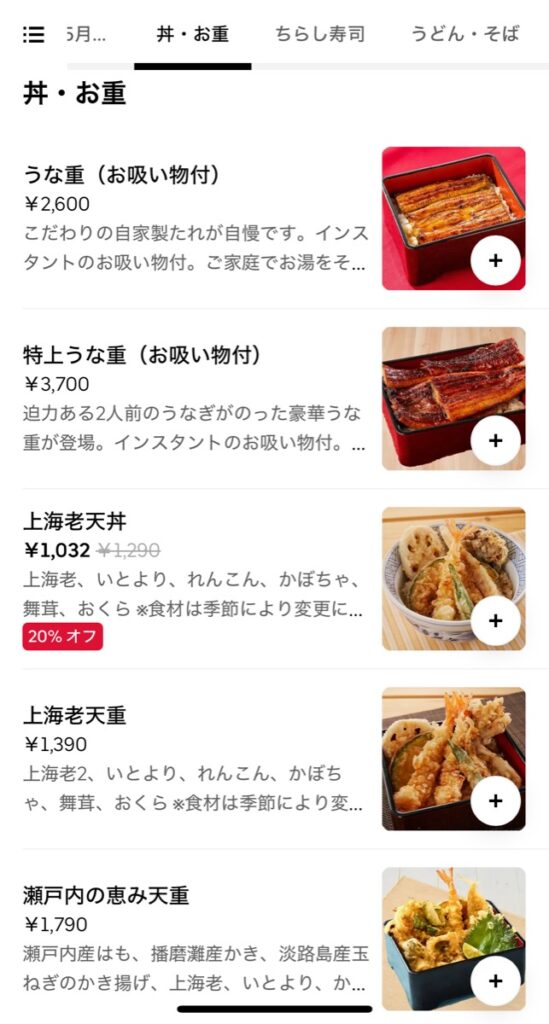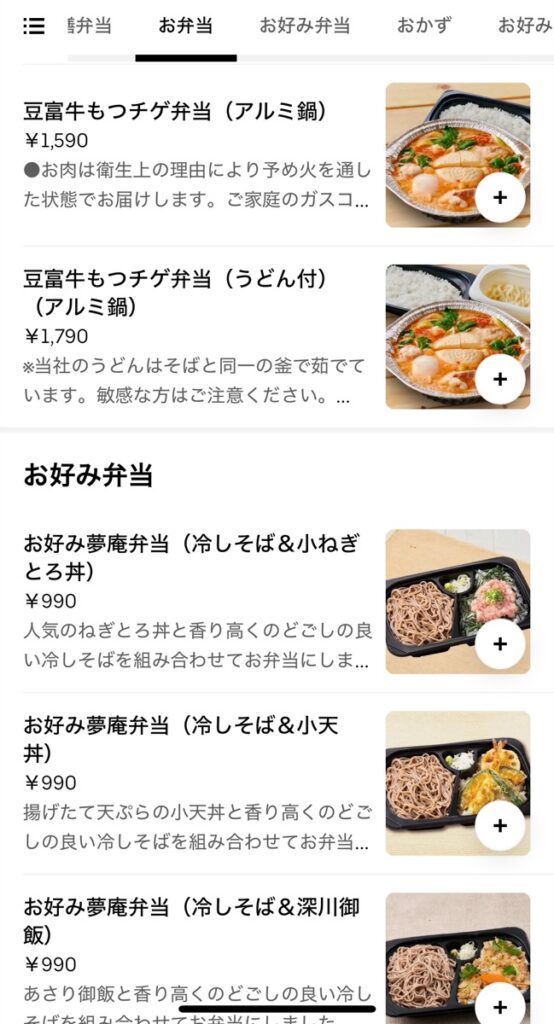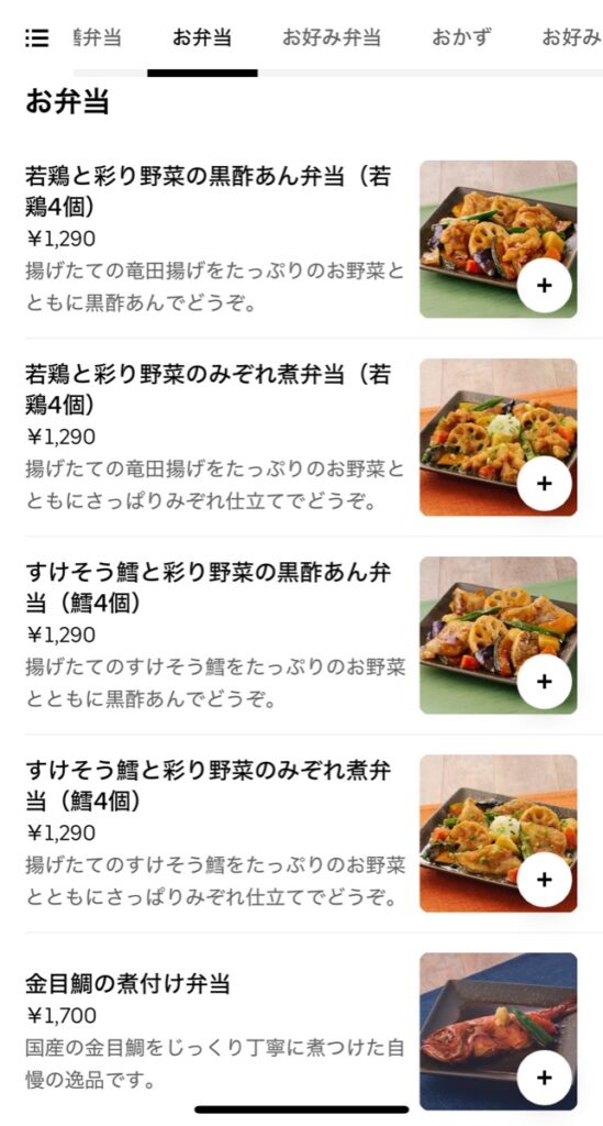 UberEatsのメニューラインナップ