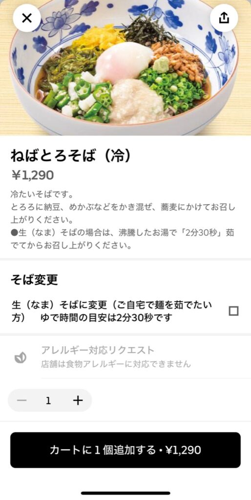 そばは「生そば選択」も可能です。こだわりがあるなら嬉しいですね。うどんとそばは一緒の窯で茹でてるとの記載もありましたので、そばアレルギーの方は要注意です。